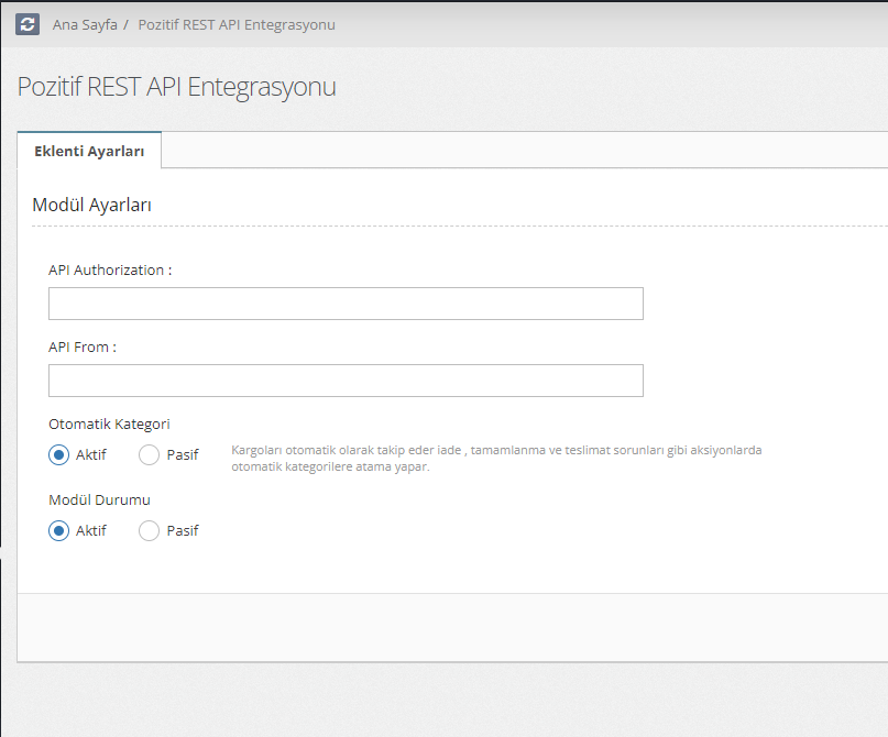 Pozitif kargo entegrasyon ayarlarını tamamlamak için aşağıdaki adımları izleyiniz: