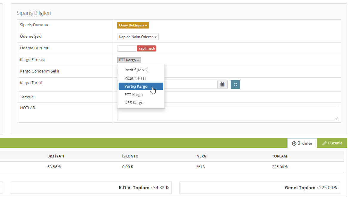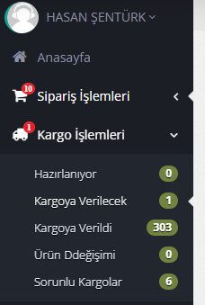 Pazaryerleri üzerinden gelen siparişlerde kargo gönderim türleri anlaşmalı olduğunuz pazaryeri üzerinden çekilir. Burada personelin ekstra bir işlem yapmasına gerek yoktur.