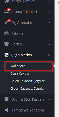 Sipsis Wallboard - çağrı merkezi izleme ekranına, sol menüde yer alan Çağrı Merkezi > Wallboard butonundan ulaşabilirsiniz.