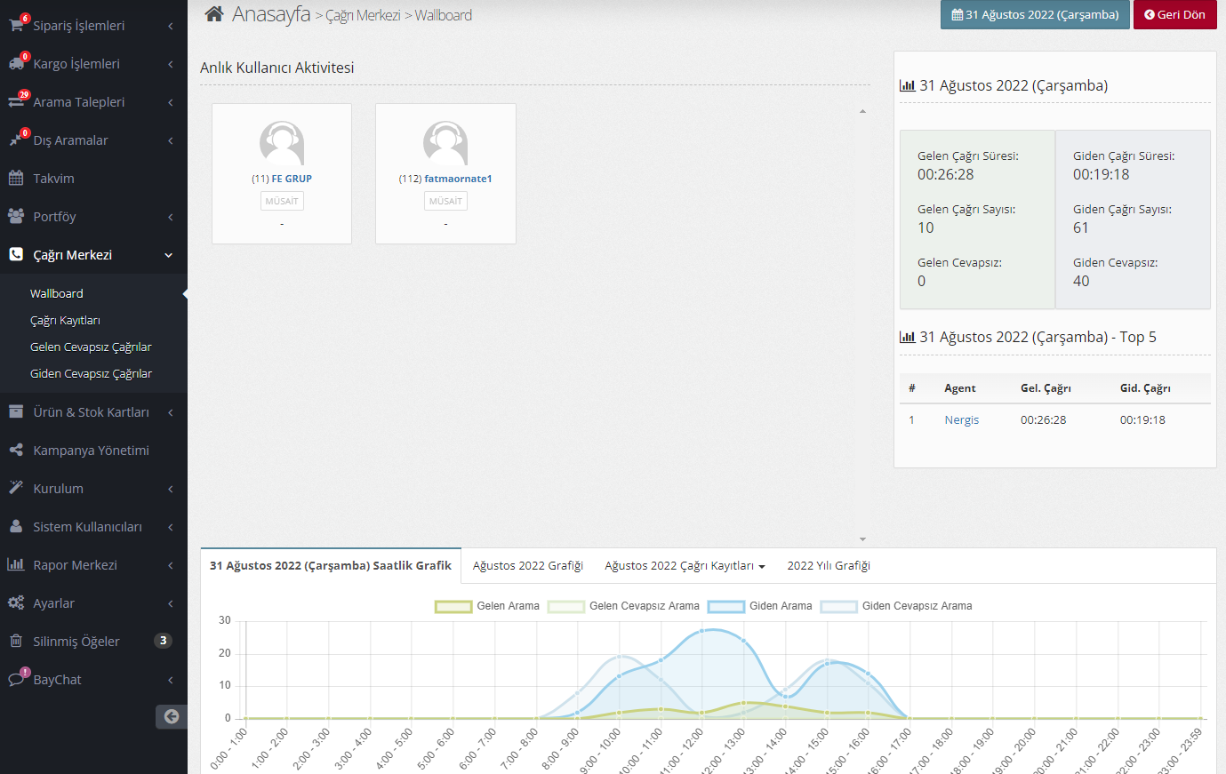 Çağrı merkezi izleme ekranında anlık olarak tüm dahililerinizin görüşmelerini görebilir, günlük çağrı özetini takip edebilir ve saatlik, günlük, aylık çağrı grafiğini görebilirsiniz.